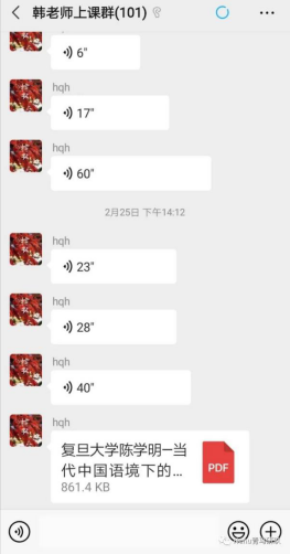 在学校和学部老师的努力下,基于各种在线教学平台,通过直播、录播等教学模式,辅以微信群、QQ群等载体实现了师生之间跨越空间阻隔式的教学互动。2019级硕博研究生们丝毫没有懈怠,努力将“自我隔离”变成“自我提升”,期待春暖花开之时在校园里与更好的自己和更好的我们相逢!