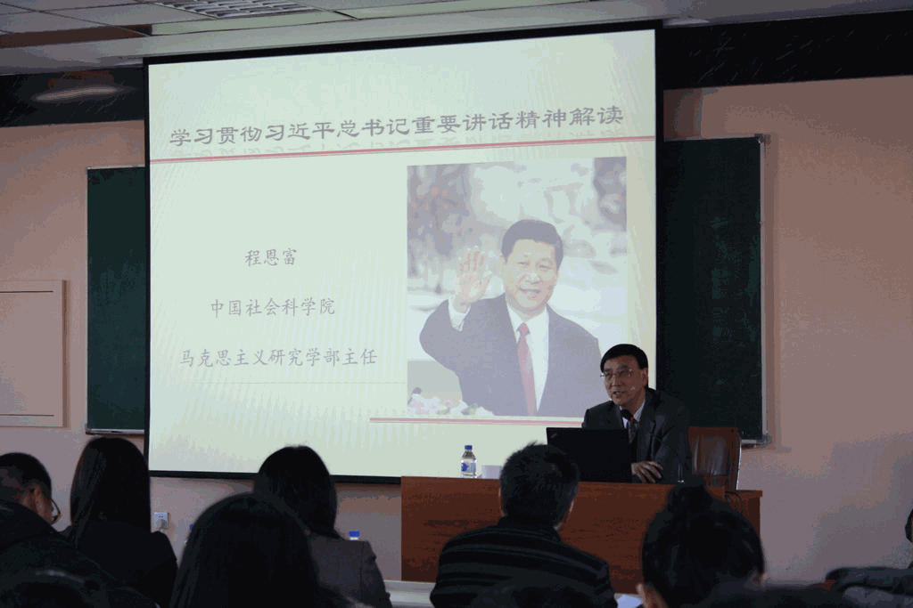 11月29日,中国社会科学院学部委员、马克思主义研究学部主任、世界政治经济学学会(WAPE)会长程恩富教授作客学部 “马克思主义论坛”,作了题为“总书记一系列重要讲话精神解读——兼谈当前若干理论之争”的报告。报告中,程恩富教授从习近平总书记200多篇讲话中总结并详细讲解了四个重要问题,即高举中国特色社会主义伟大旗帜、中华民族复兴之中国梦、推进改革开放和科技创新、巩固马克思主义在意识形态领域的指导地位。同时,程恩富教授在报告中对当前存在的一些理论争议也进行了分析,并阐述了自己的观点。