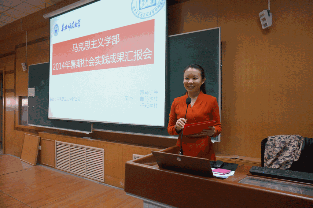的三支暑期社会实践团队:井冈山调研团队、信有所属、萤火支教团分别从实践成果和队员观感两方面对团队暑期社会实践活动作了精彩展示。汇报人以生动的实例、扎实的成果、真挚的感情引发了参会人员的思考与共鸣,汇报会上掌声不断,笑声连连。