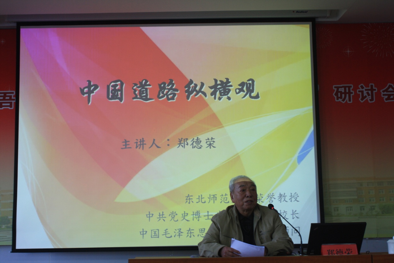 10月29日,由社会科学处、校团委主办,调教小说 承办的“七十洄想――东师校庆讲坛”报告会举行。我校荣誉教授郑德荣应邀为师生们作了题为“中国道路纵横观”的报告。报告中,郑德荣教授围绕“中国道路”展开讲解,从历史逻辑、现实依据和理论依据、科学内涵与基本特征、优越性和历史地位四个方面阐述了他的观点。郑德荣教授虽已90岁高龄,但依然坚持在教育和科研战线上奋斗不息、探索创新,他的治学精神和优良学风深深地感染着每一位同学。