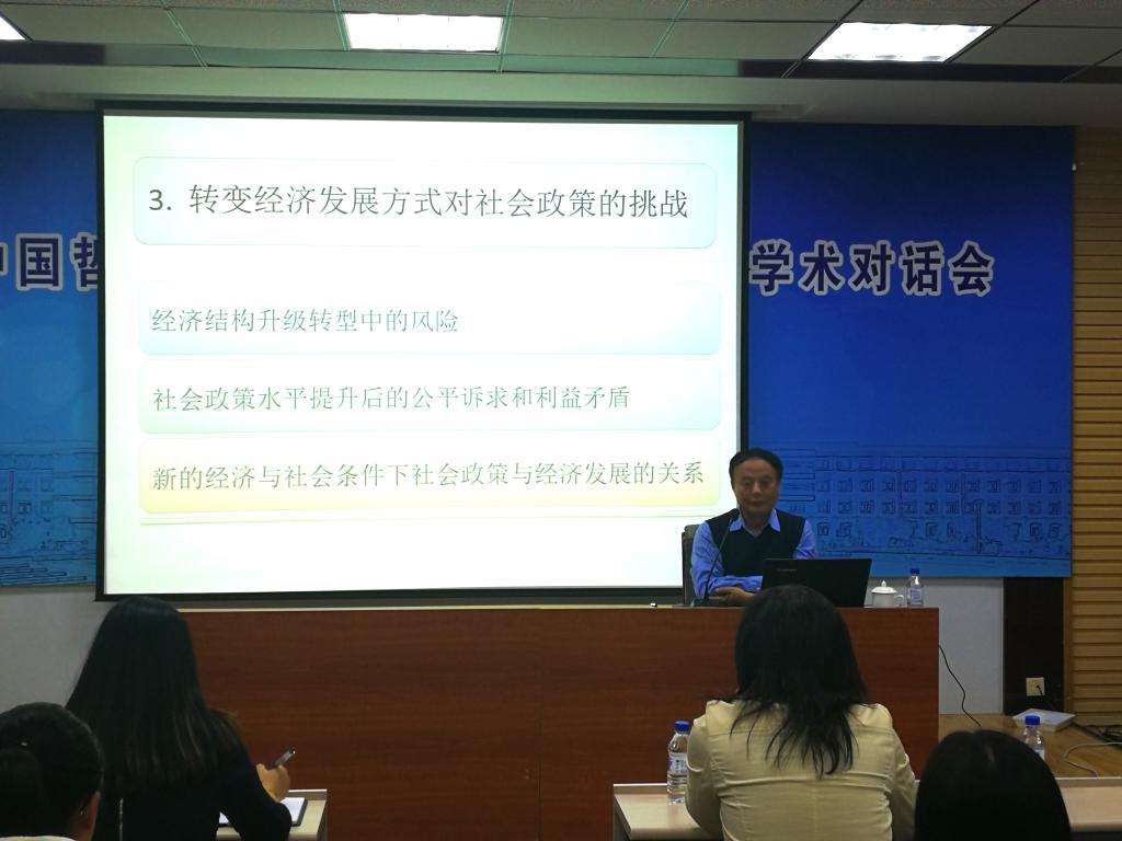 当天晚18:30,关信平教授在学部二楼会议室作了题为“当前我国社会政策发展的主要议题”的学术报告。报告首先回顾了社会政策发展的历程,介绍了改革开放以来影响社会政策的经济因素和观念因素及由此造成的我国低水平的社会保护和高度外向型经济,以及过去十年以来社会政策的恢复性发展。重点介绍了经济新常态下的我国社会政策面临的挑战和机遇。关信平教授提出当代我国社会政策发展的主要议题是关于福利水平、运行效率、制度公平、和责任主体间关系四大议题。报告中关信平教授指出我国政府在当下应继续加大社会支出,以社会政策托底,从而改善民生,促进社会公平。关信平教授由浅入深的讲述,帮助 同学们理解到了社会政策之于社会治理、社会工作发展的重要意义,为同学们开辟了新的学术视野。