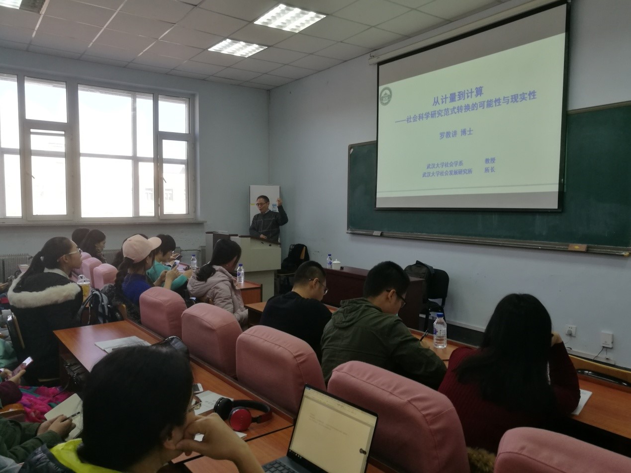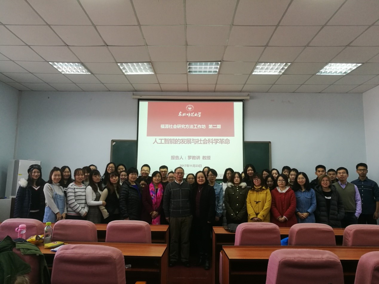 社会学院推出了“福源社会研究方法工作坊”系列活动。近日,工作坊第二期开讲,武汉大学社会发展研究所所长、湖北省社会心理学会会长罗教讲教授作了以“从计量到计算——社会科学研究范式转换的可能性与现实性” 及“人工智能的发展与社会科学革命”为题的学术演讲。