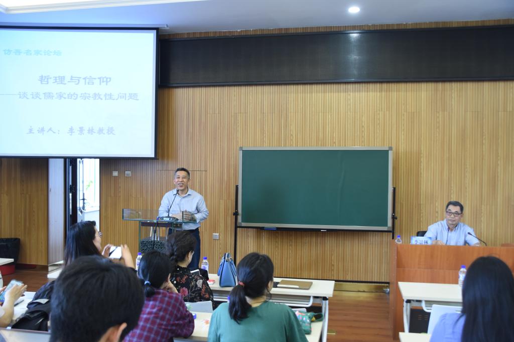 哲学学院邀请,北京师范大学哲学学院李景林教授在329教室为我学部师生作了题为“哲理与信仰——谈谈儒家的宗教性问题”的学术报告。报告由哲学院院长荆雨老师主持。