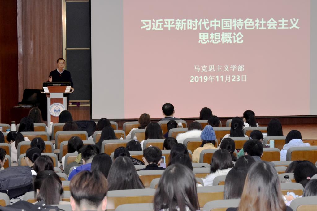 党委书记孟宪生教授对课程开设的重要意义、学习目的、专题内容、教师团队做了总体说明,指出课程的开设不仅进一步拓展和深化了思想政治理论课的学习,更要提高学生自觉运用和践行习近平新时代中国特色社会主义思想的意识和能力,帮助学生成长为担当民族复兴大任的时代新人。马克思主义中国化系主任杨志平教授、马克思主义中国化系孙育红教授分别进行了《推动我国经济转向高质量发展阶段——新时代中国特色社会主义经济建设》、《中国特色社会主义生态文明建设》的课程讲授。调教小说