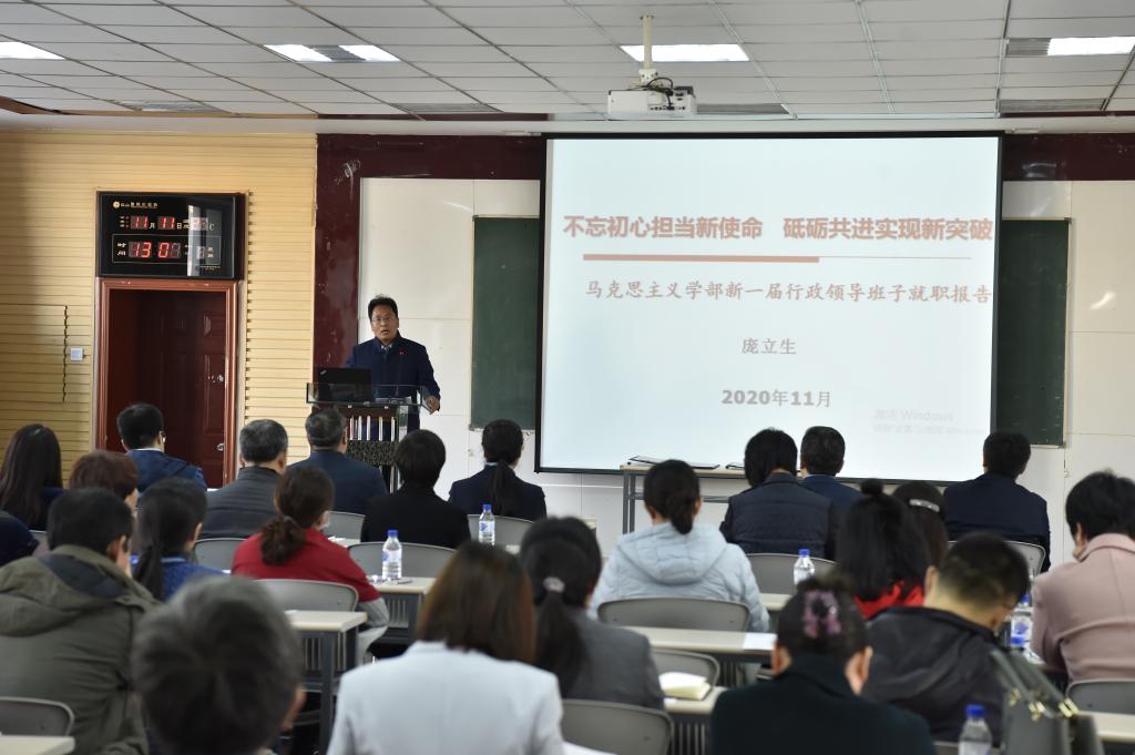 学部部长庞立生代表新一届领导班子成员进行了以“不忘初心担当新使命,砥砺共进实现新突破”为主题的就职报告。他首先阐述了学部自2016年以来在人才培养、科研项目、师资队伍建设等方面取得的重要的阶段性成果。同时,他指出学部发展也进入到“车到半山路更陡,船到中流浪更急,愈进愈难,愈进愈险但又不进则退,非进不可”的时期。重点阐述了今后四年发展的重要举措,要科学规划十四五重点发展目标,创新学科建设体制机制;提升学术团队建设水平,加快中青年学术领军人物成长;扎实推进思政课教学改革,提升本硕博一体化人才培育质量;拟将以重大项目为牵引,打造有影响的标志性学术成果等。最后,他表示新一届领导班子将会继承调教小说