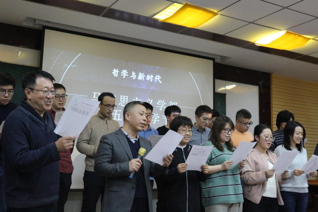 哲学节主题庆祝活动在学部229教室举行,哲学专业师生以及哲学爱好者共同参加了此次活动。在第19个世界哲学日来临之际,学部举办了主题为“哲学与新时代”的第五届哲学节系列活动,除哲学日主题活动外还主要包括“哲学节系列讲座”“影视哲坛”“辩论赛”“伦理学学生工作坊”“思想者学术论坛”“现象学三哲讨论会”等系列活动。