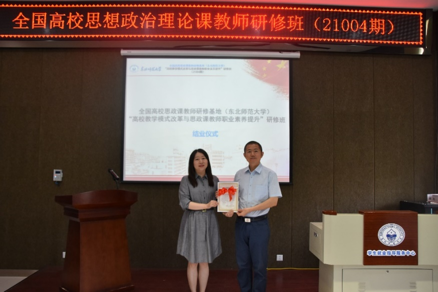副部长李爽在结业仪式上致辞。她回顾本次培训的全程强调,作为思政课教师,要在思政课教学中紧紧抓住理论着力点,立足新时代以科学理论指导思政课教学;要加深对思政课教学体系化的理解,通过对教学经验的总结、教学技巧的运用和教学模式的创新不断提升思政课的实效性;要践行“尊重的教育”“创造的教育”理念,尊重教育、教师、学生,激发教育主客体的创造性,提升育人育才的效果。最后,她表达了对大家的美好祝愿。