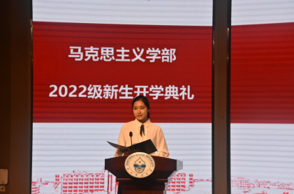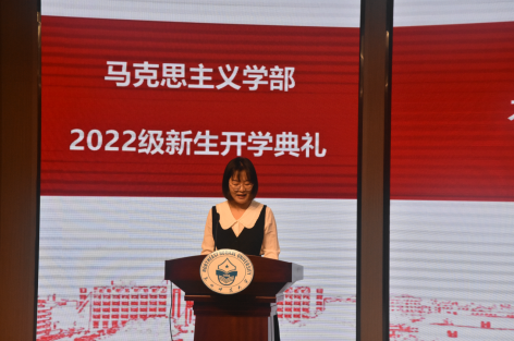 2021级硕士研究生赵小宇同学作为在校生代表发言。她以 “马部学子应该成为什么样子的人?”为主题,与22级学弟学妹们分享了三点感悟:马部学子要成为“博学善思”的人;马部学子要成为“实干笃行”的人;马部学子要成为“心怀信仰”的人。时间流逝不舍昼夜,前进航程击鼓催征。她鼓励新生同学们坚定理想信念,笃行不怠;怀揣青衿之志,履践致远;扬鞭奋蹄,去迎接更加光明美好的未来!