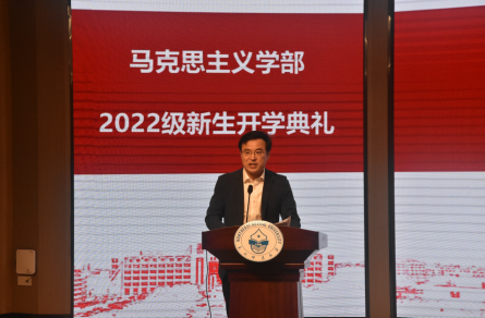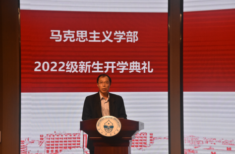 接下来由客洪刚老师作为教师代表发言,他和同学们分享了三点学习和生活中的经验,一是勤于思考,理论联系实际。他指出:我们不能仅仅只顾对理论的学习,固化、僵化对马克思主义和中国化马克思主义理论成果的理解和运用,而应在实践中发现问题、破解问题,从而更好理解相关理论。二是珍惜机会,多交挚友。三是从小改变开始,积小胜为大胜。他叮嘱同学们只要每天肯努力,多进步1%,坚持一段时间所获得的回报会比想象中多得多。未来属于同学们,客老师祝愿同学们能够在学部的学习和生活中收获快乐,收获幸福,收获进步!