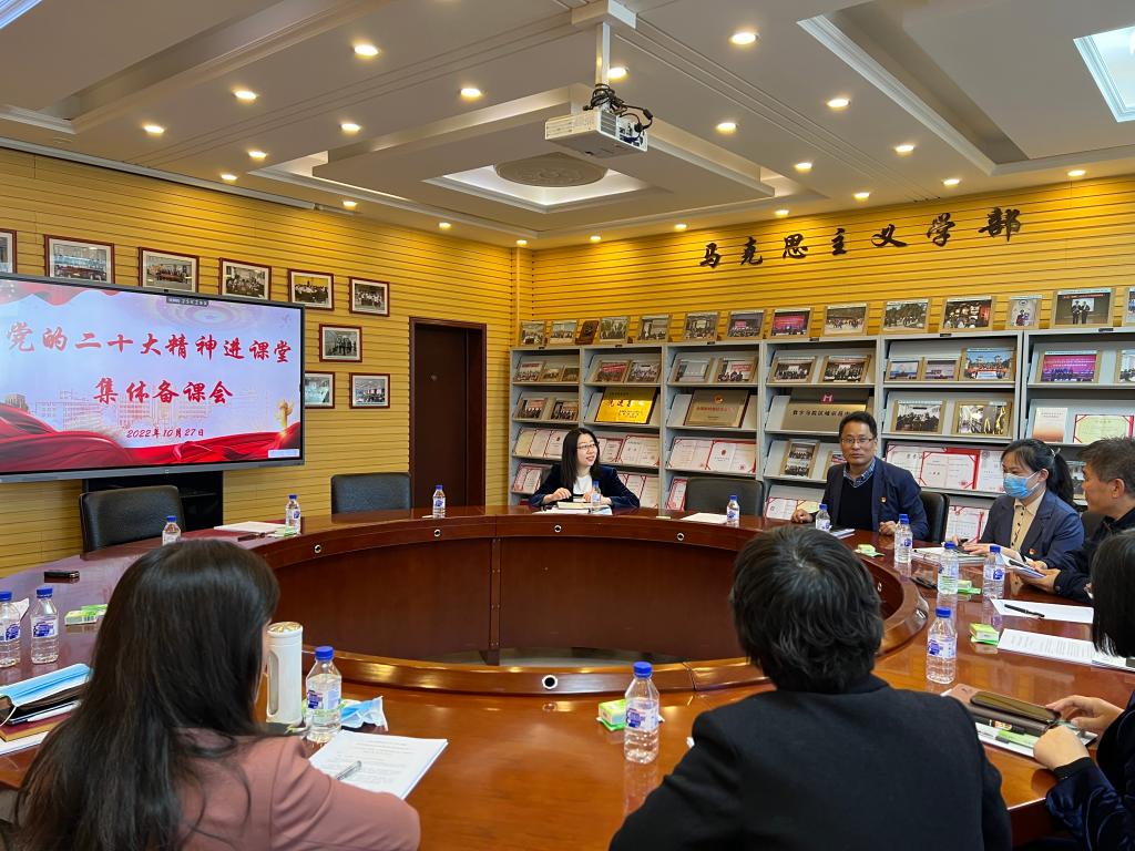 教师们集中学习和讨论了党的二十大精神,并结合各高校各课程的教情和学情,进一步交流了党的二十大精神融入思政课教学的原则要求、重点难点以及方式方法。教师们一致认为,把党的二十大精神融入思政课是思政课教师应当担当的重要政治任务,思政课教师要自觉做党的二十大精神的模范学习者和传播者,深刻认识和领会党的二十大精神融入思政课教学的重大意义,深入研究和阐释党的二十大精神,紧密结合各门课程内容,切实推动党的二十大精神进课堂进学生头脑,充分发挥思政课铸魂育人的作用。