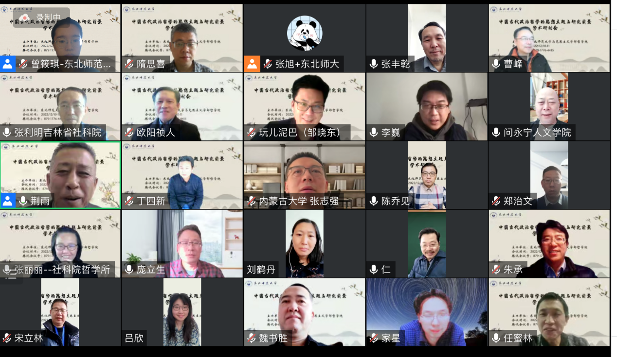 哲学院主办的“中国古代政治哲学的思想主题与研究前景”学术研讨会在线上召开。来自北京大学、清华大学、武汉大学、复旦大学、中国人民大学、中山大学、南开大学、华东师范大学、中国社会科学院等20余所国内高校和科研院所的50余位专家学者参加了此次会议。开幕式由我校哲学院荆雨教授主持。