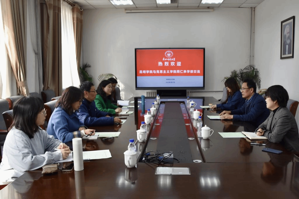 3月21日,昆明学院马克思主义学院院长陈嘉一行5人来我校调研,学部部长庞立生、副部长史巍、党委副书记兼副部长潘宛莹参加了交流座谈会。
