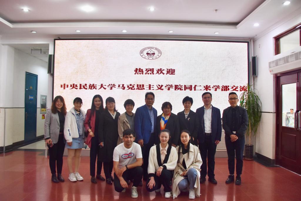 双方主要围绕思想政治教育学科建设展开交流,特别就思想道德与法治课程建设的先进经验、大中小学思想政治教育一体化建设的创新举措、思想政治教育研究生培养等问题进行了深入探讨。随后,中央民族大学各位同仁参观了学部的图书资料室、报告厅、多功能智慧教室等。