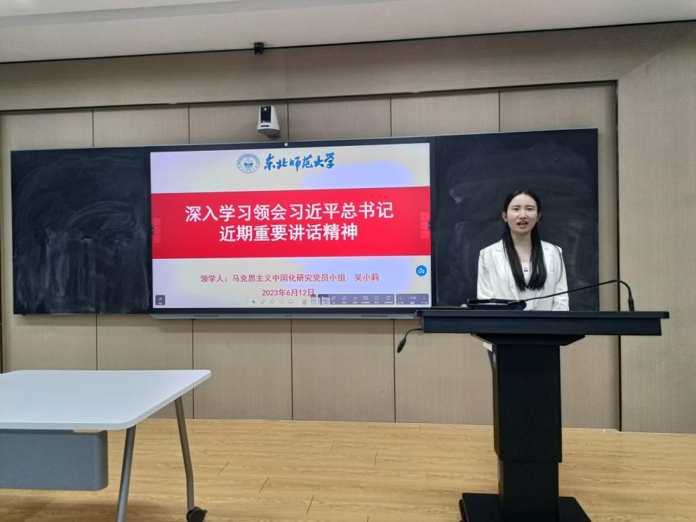 2022级研究生党支部在学部229教室开展了“深入学习领会习近平总书记近期重要讲话精神”专题理论学习。理论学习由马克思主义中国化研究专业党员学习小组吴小莉同志领学。