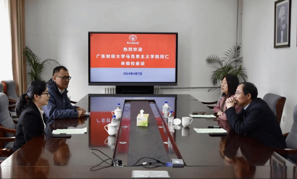 4月7日,广东财经大学马克思主义学院院长袁继红、副院长孙晓晖来调教小说 调研交流,学部党委书记孟宪生、副部长李爽参加座谈。