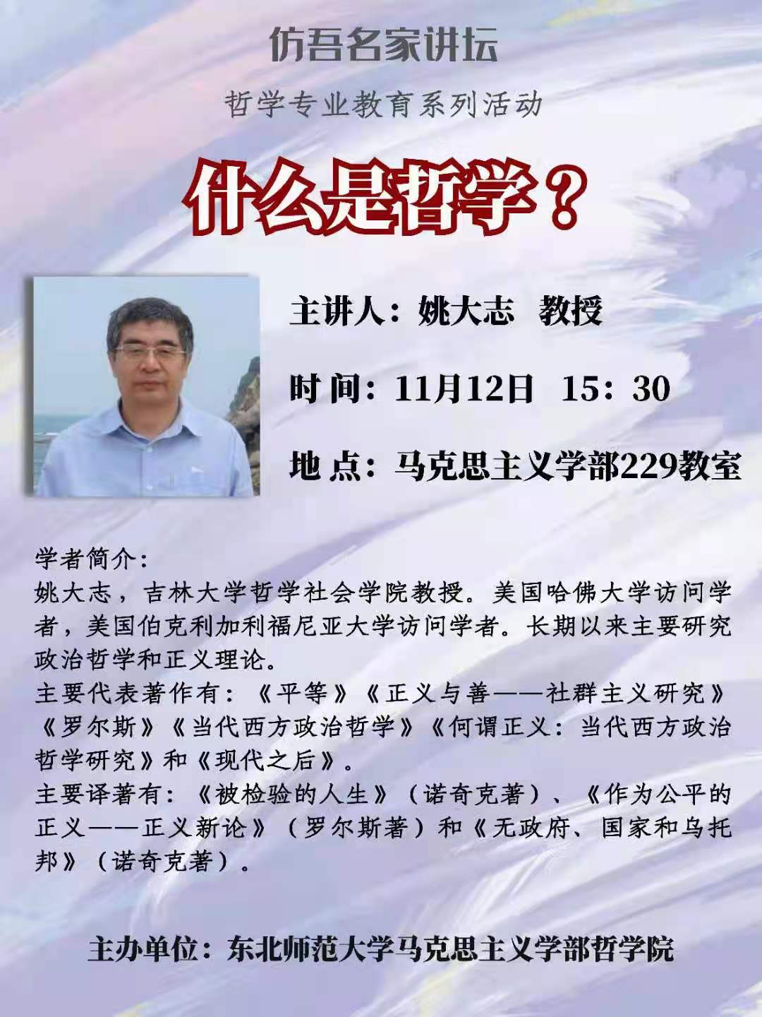 本讲座是仿吾名家讲坛系列讲座,也是哲学专业教育系列活动之一。