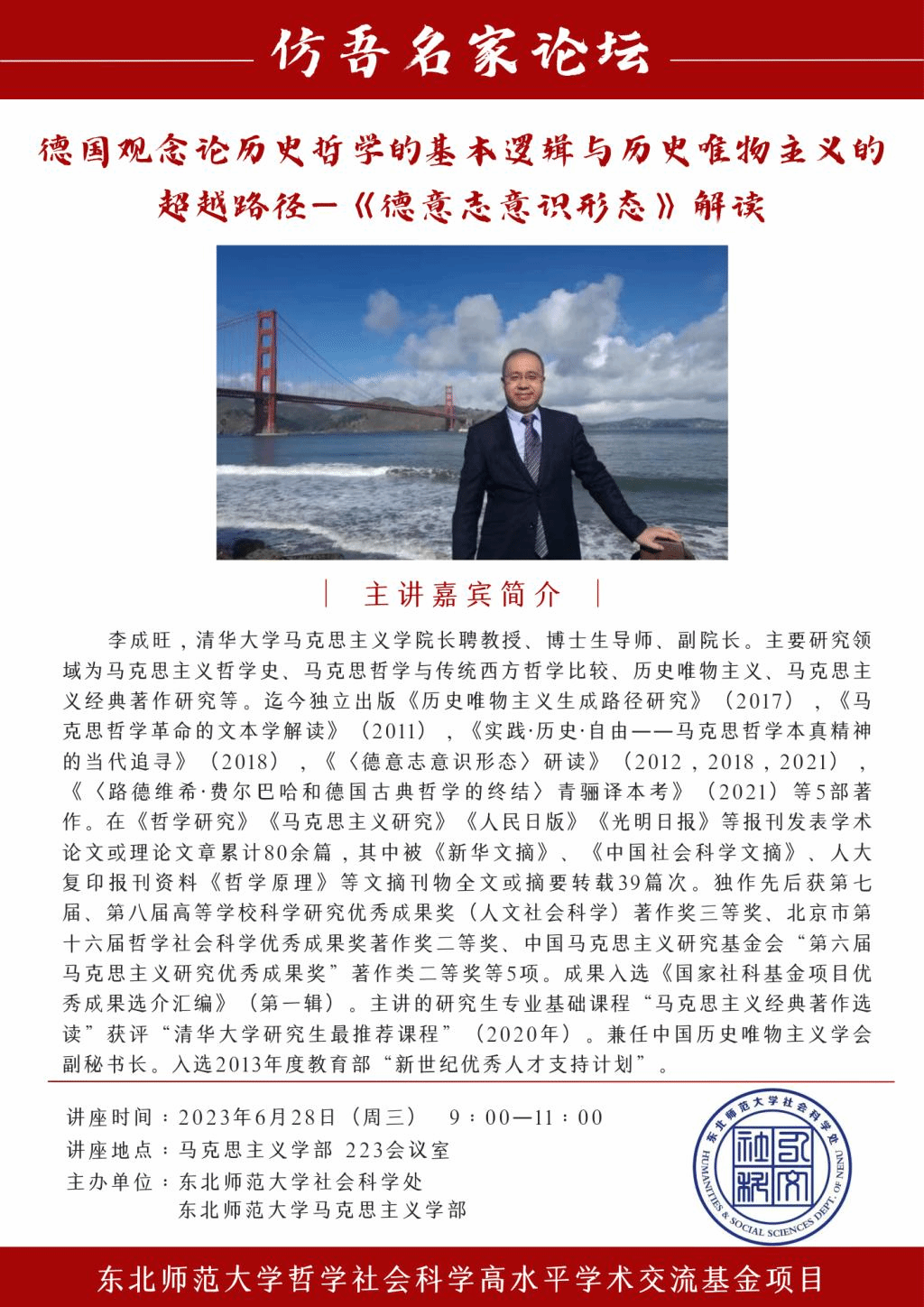 讲座预告:德国观念论历史哲学的基本逻辑与历史唯物主义的超越路径一《德意志意识形态》解读