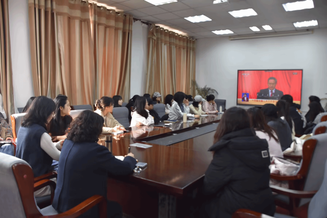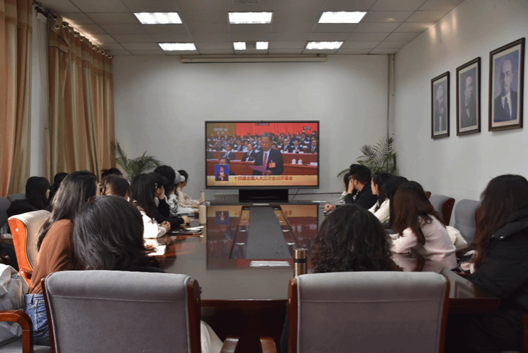 组织各年级学生代表和团学骨干在学部323会议室集中学习收看两会开幕直播。同学们结合自己的专业学习,围绕政府工作报告,开展广泛的学习讨论。