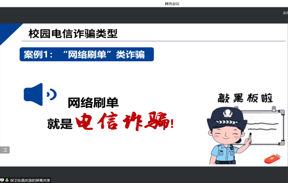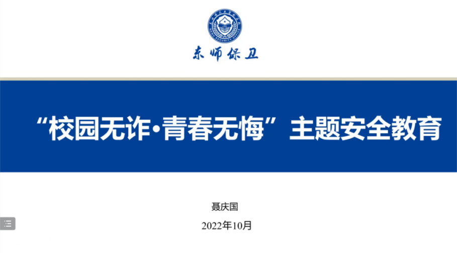 开展了以“校园无诈·青春无悔”为主题的线上反诈安全教育讲座,由保卫处聂庆国老师主讲。此次活动有效提高了同学们的反诈意识与反诈素养,形成了良好的教育效果。